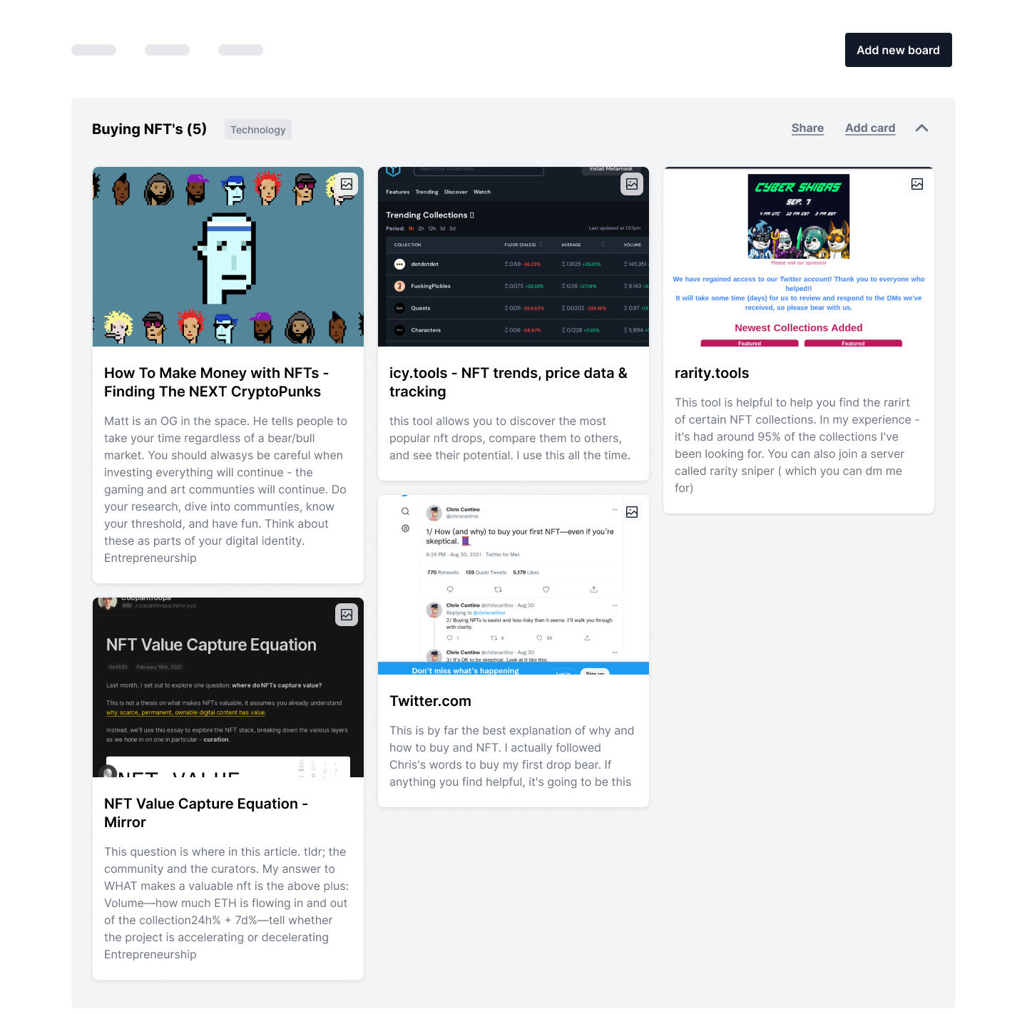 Find content, save using our web extension, add your thoughts, create board, earn!